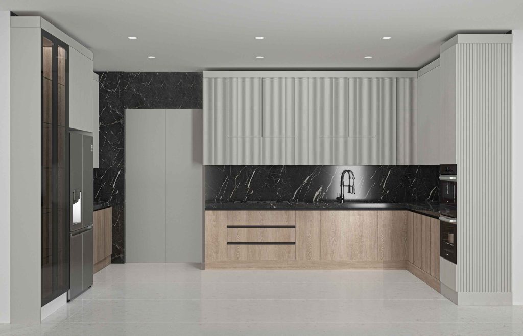مشتری بر اساس بودجه و سلیقه، نوع متریال (MDF، هایگلاس، چوب و…) و سبک طراحی (مدرن، کلاسیک، نئوکلاسیک) را انتخاب میکند.